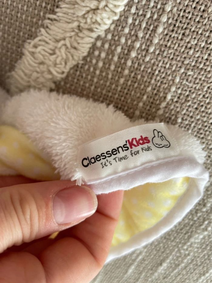 Peluche doudou plat sommeil 29cm claessens’kids lapin jour nuit blanc très bon état - photo numéro 4