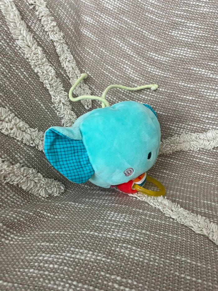 Peluche doudou vibrant 20cm lilliputiens éléphant bleu et rouge parfait état - photo numéro 2