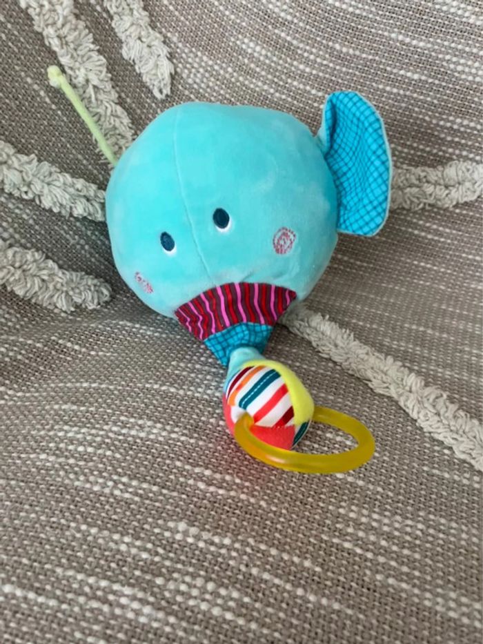 Peluche doudou vibrant 20cm lilliputiens éléphant bleu et rouge parfait état
