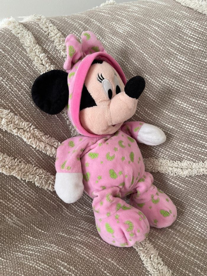 Peluche doudou phosphorescent 30cm Disney Minnie souris rose très bon état - photo numéro 1