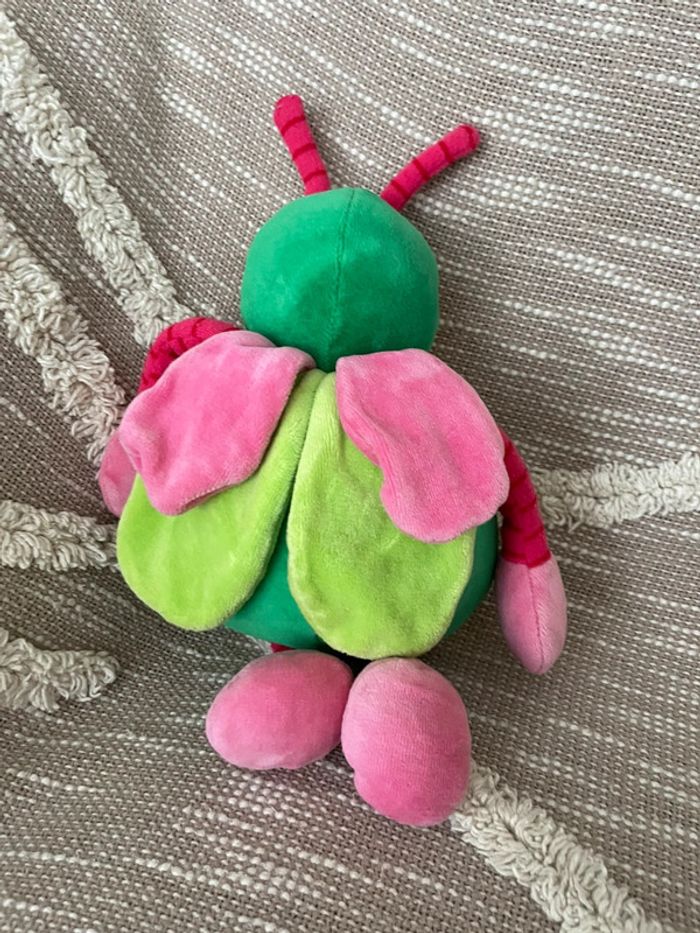 Peluche doudou 28cm moulin roty abeille coccinelle vert et rose très bon état - photo numéro 4