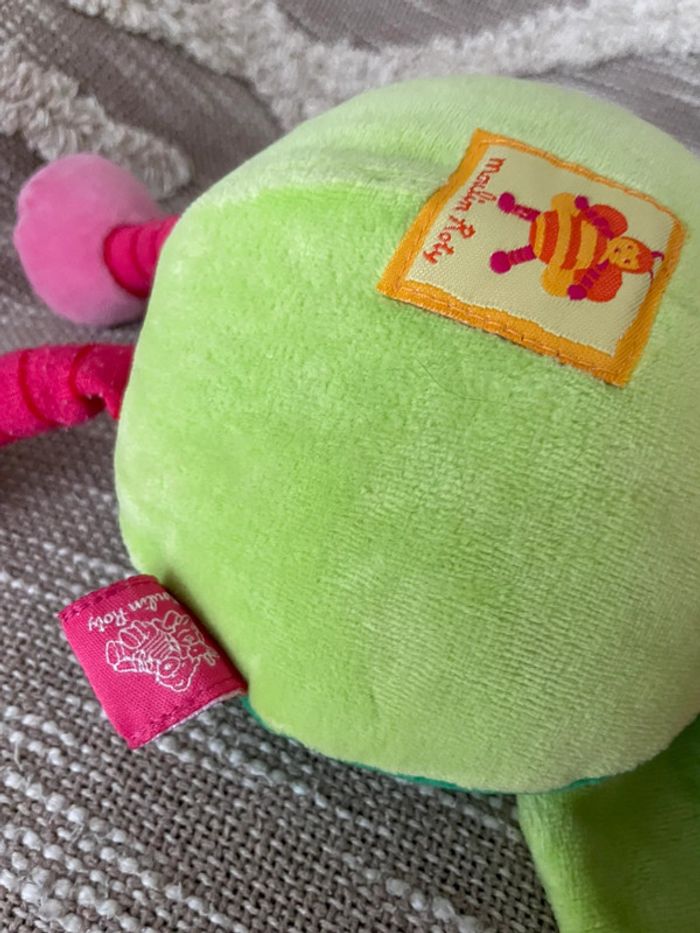 Peluche doudou 28cm moulin roty abeille coccinelle vert et rose très bon état - photo numéro 3