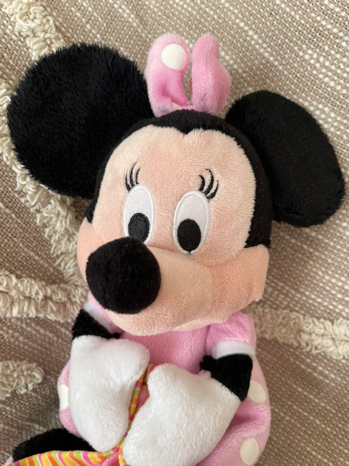 Peluche doudou mouchoir 28cm Disney Minnie souris rose très bon état - photo numéro 6