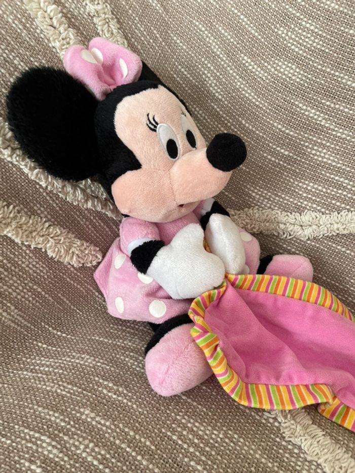 Peluche doudou mouchoir 28cm Disney Minnie souris rose très bon état