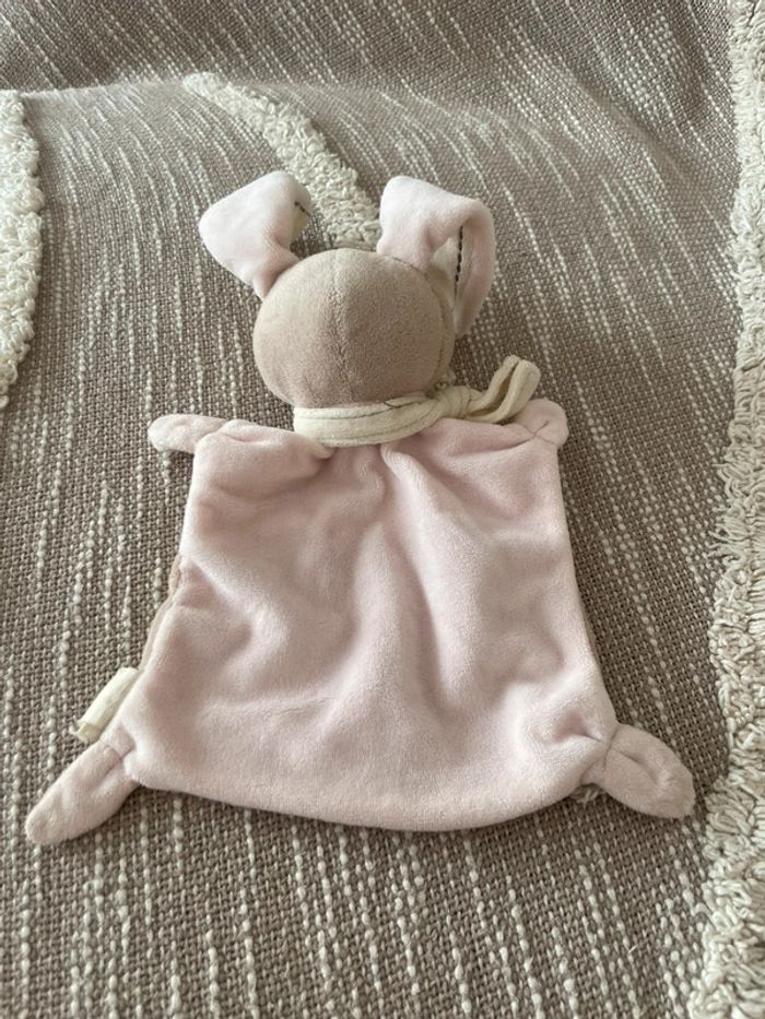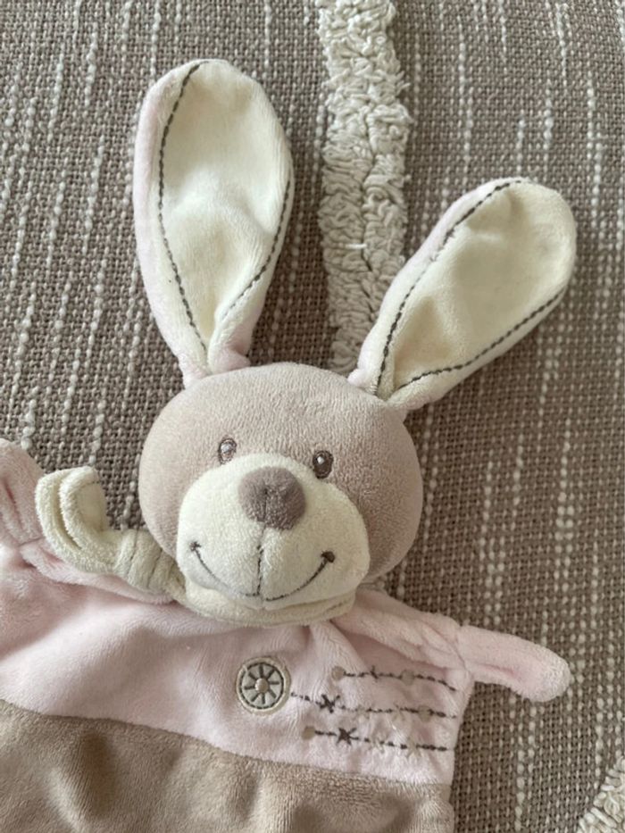 Peluche doudou plat 20cm nicotoy lapin rose et beige marron très bon état