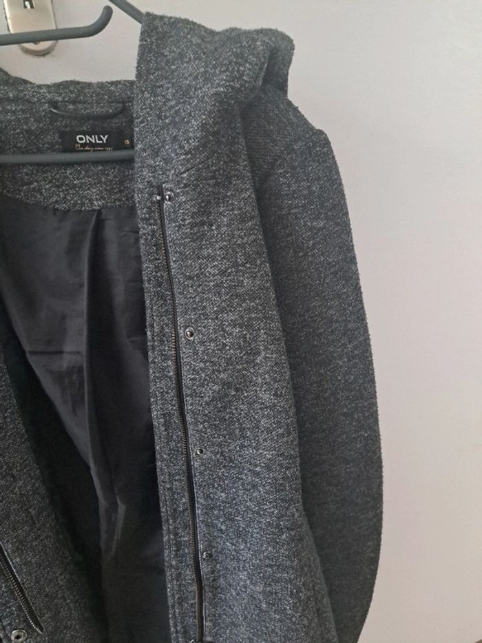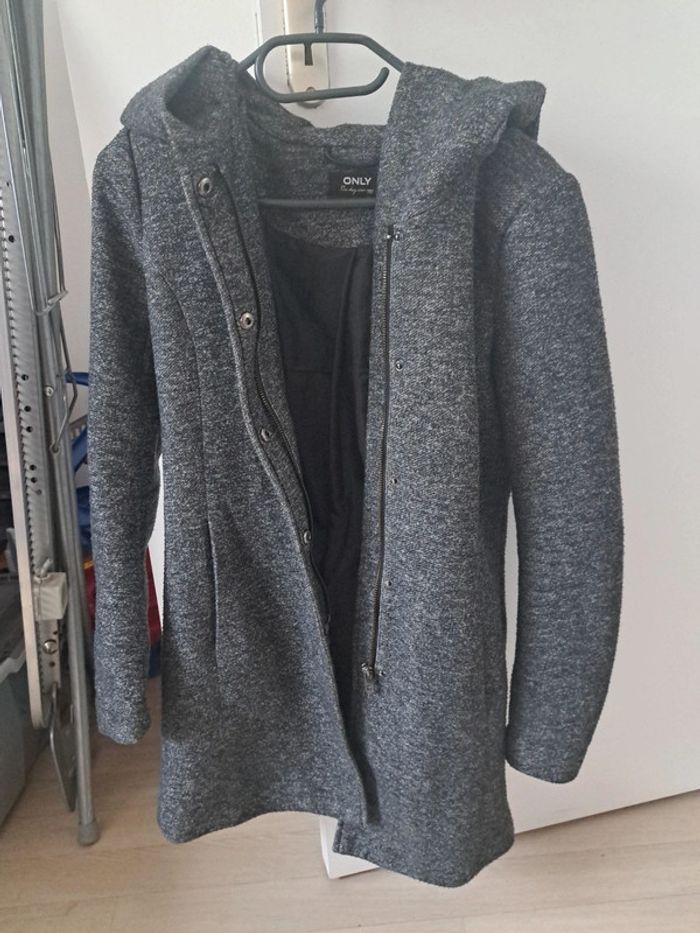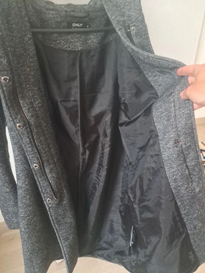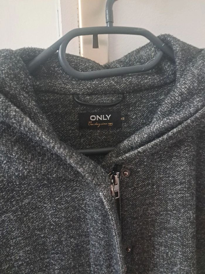 Only. Gris foncé. XS mais correspond à un S . Fermeture et pression. A capuche . Mi-saison
