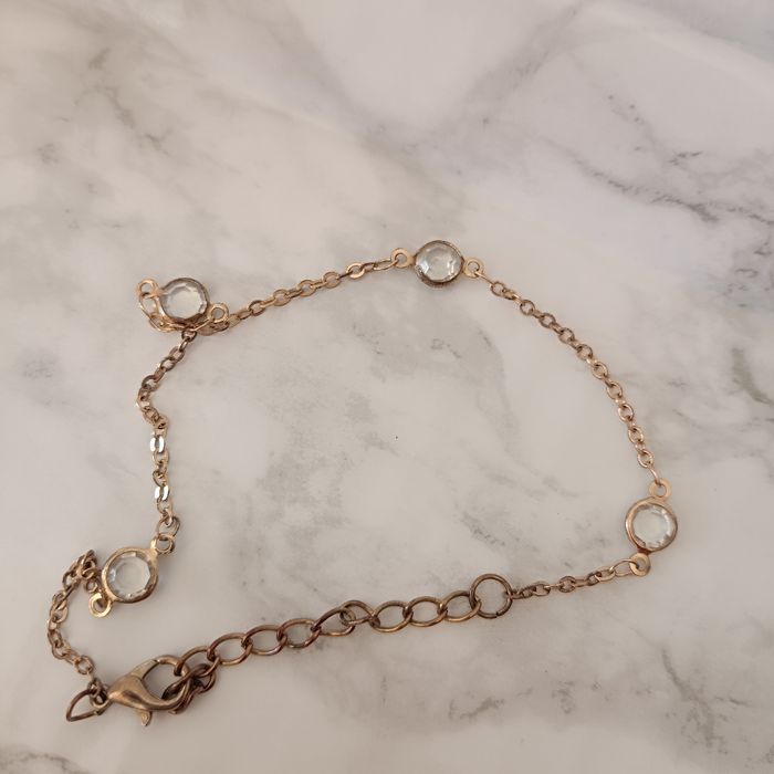 Bracelet cheville couleur dorée et pierres transparentes - photo numéro 1