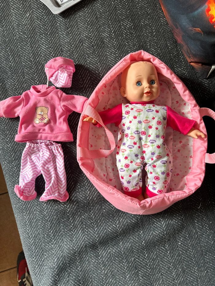 Poupée dans son couffin avec 1 tenue de rechange - photo numéro 1