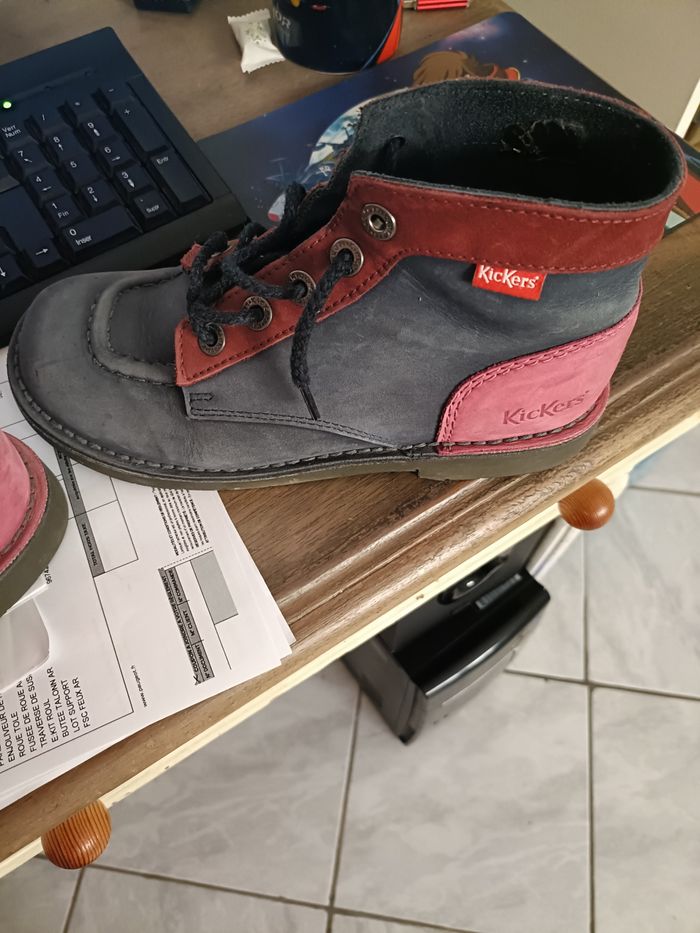Bottines Kickers Bon état général Bleu et rose/bordeaux