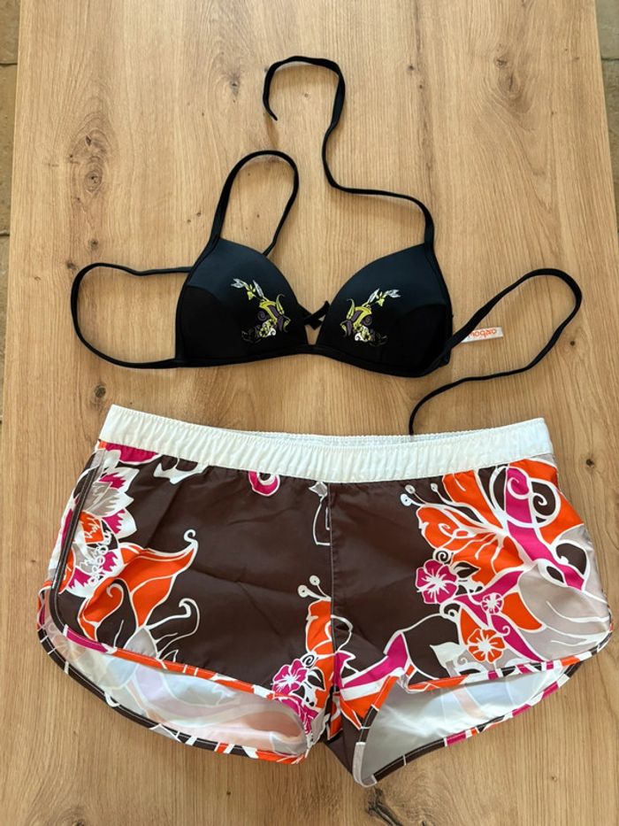 Je vends ce maillot de bain (short + haut) de la marque Oxbow. Short: taille 2 Haut: taille 1B En excellent état comme neuf car porté une seule fois