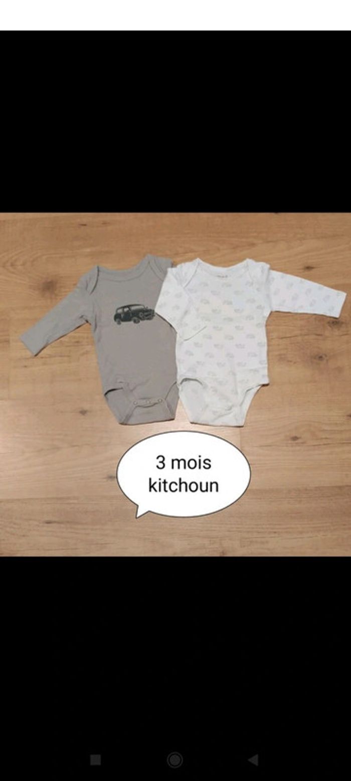 Lot de 4 bodies manches longues de la marque kitchoun dans un bon état général (une légère tâche sur une manche) 1 obaïbi en très bon état #vente763moisG #bodiemancheslongues #body3moisgarcon #body3moismixte