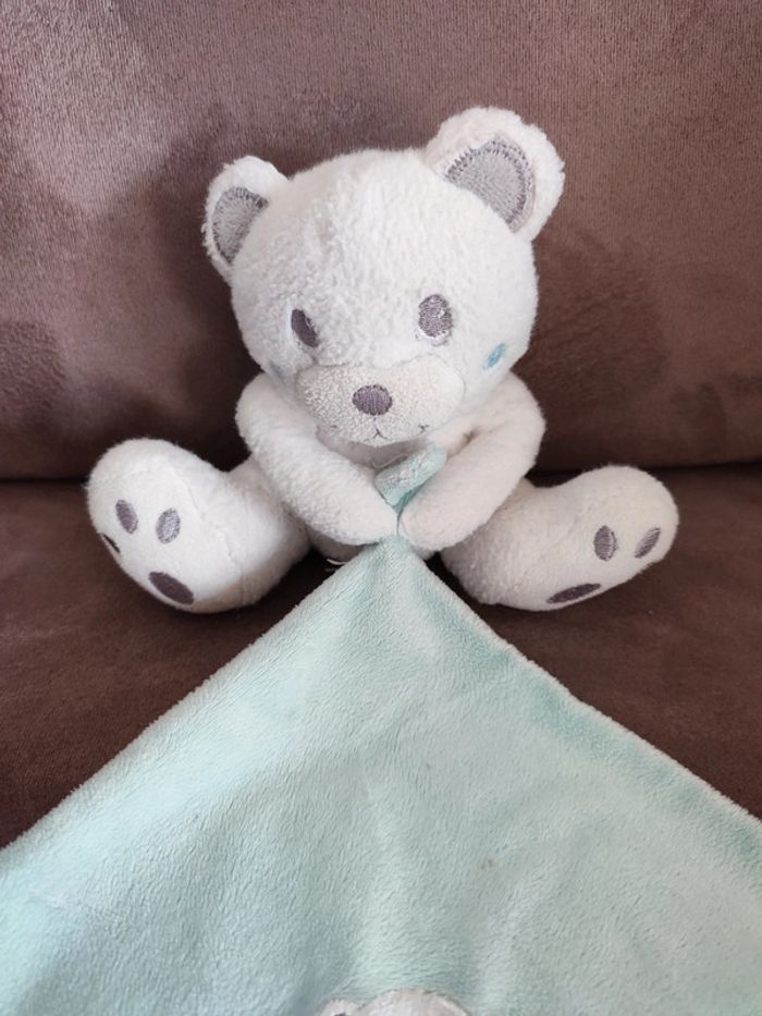 Doudou plat nounours Kiabi vert et blanc - photo numéro 6