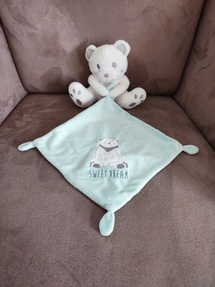 Doudou plat nounours Kiabi vert et blanc - photo numéro 1
