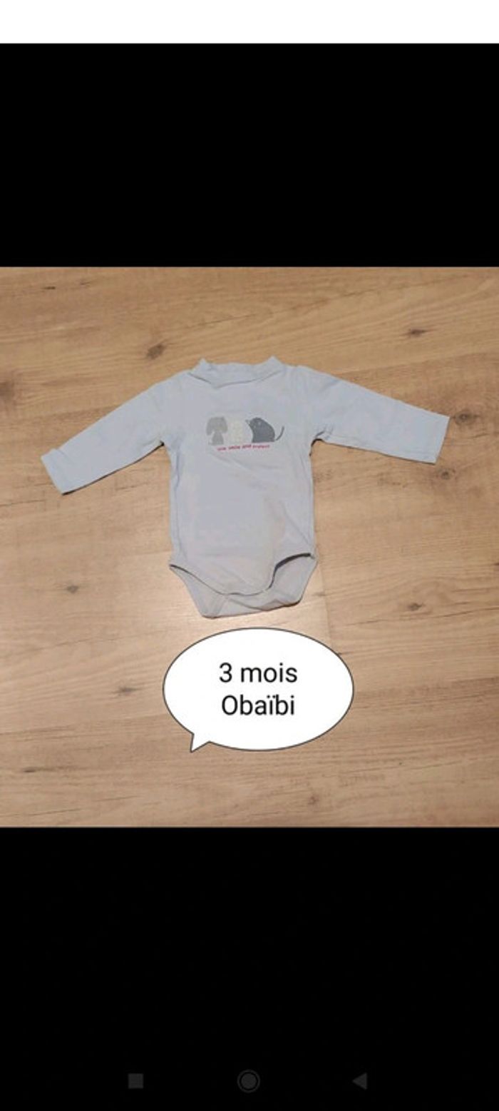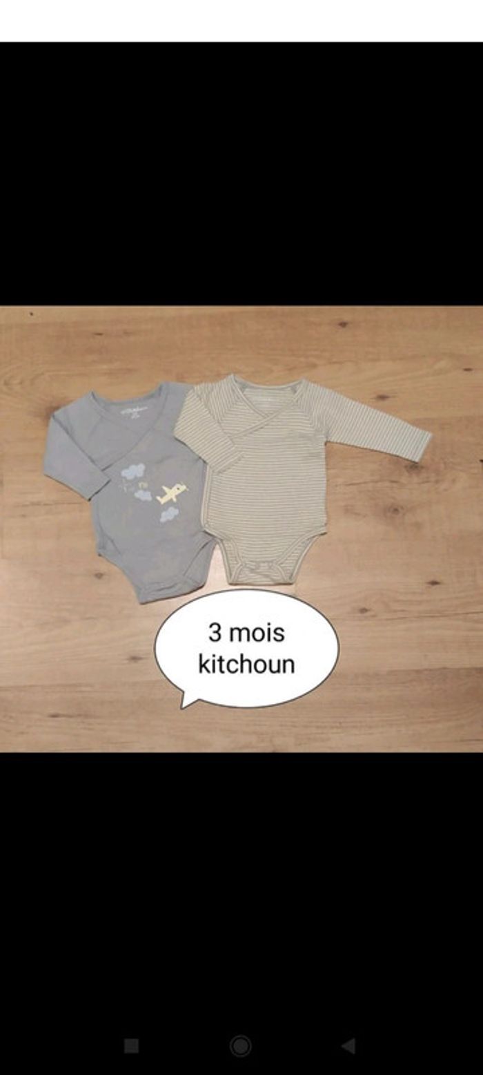 Lot de 4 bodies manches longues de la marque kitchoun dans un bon état général (une légère tâche sur une manche) 1 obaïbi en très bon état #vente763moisG #bodiemancheslongues #body3moisgarcon #body3moismixte