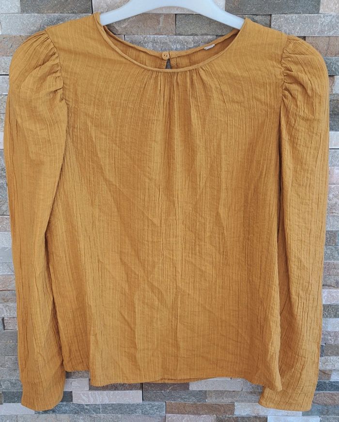 Blouse manches longues moutarde de la marque Mango en taille 34. En très bon état.