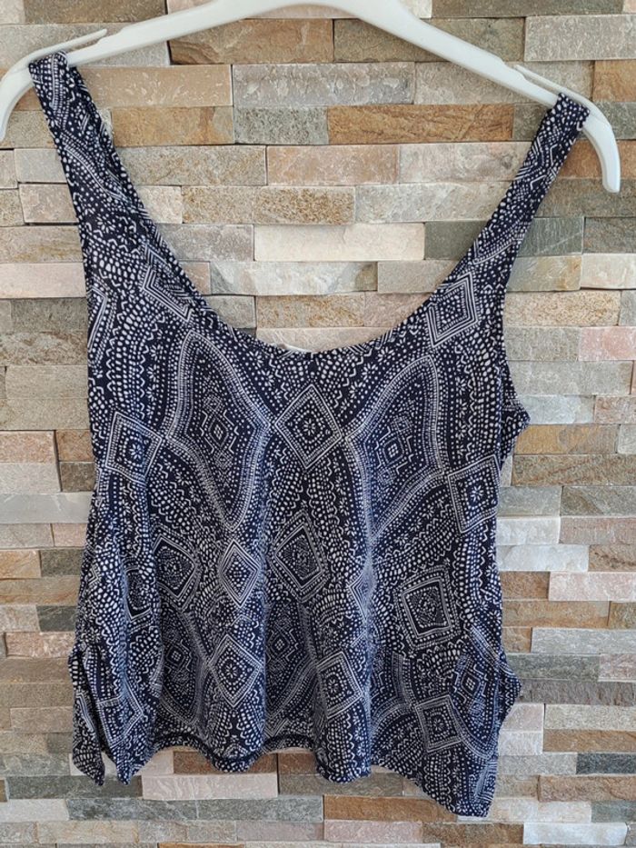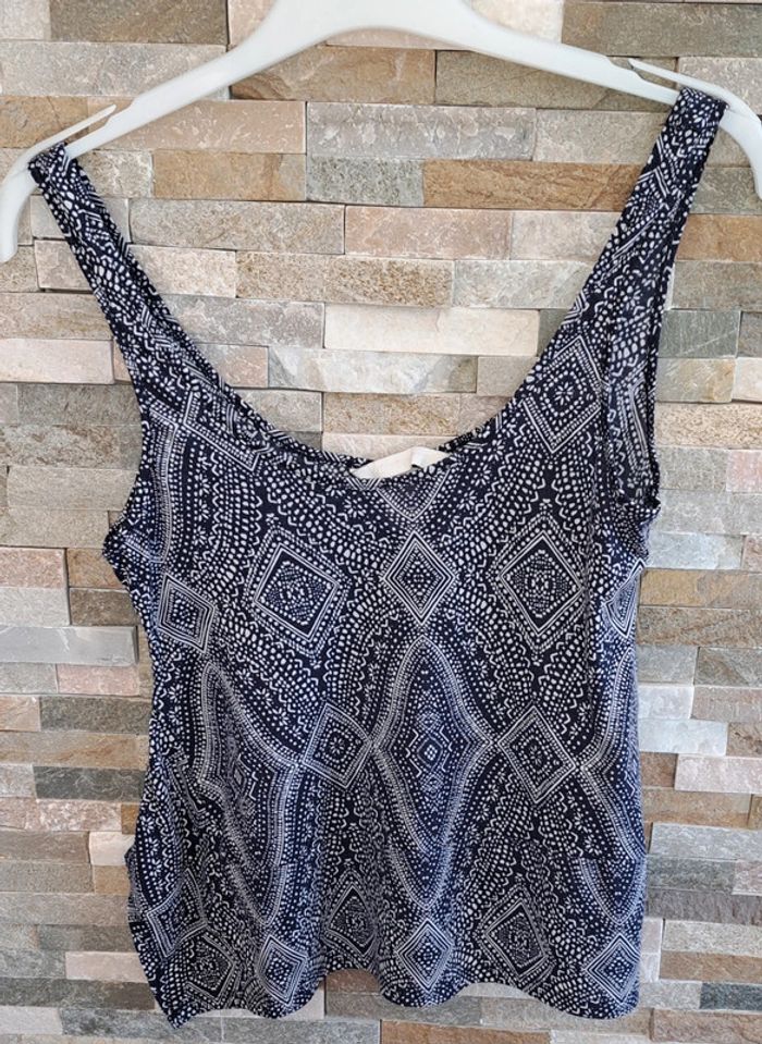 Débardeur à motif bleu et blanc de la marque H&M en taille 34. En très bon état.