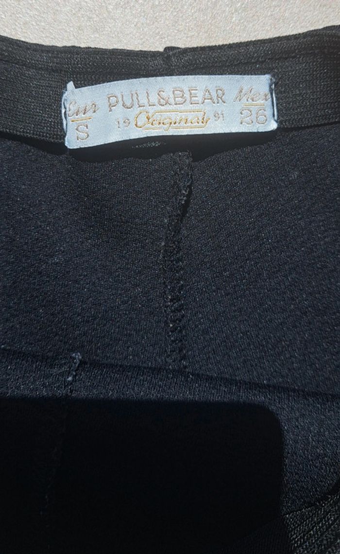 Jupe patineuse noire à taille élastique de la marque Pull&Bear en taille 36. En parfait état. Sur les photos, les tâches que l'on voit se sont les reflets des carreaux.
