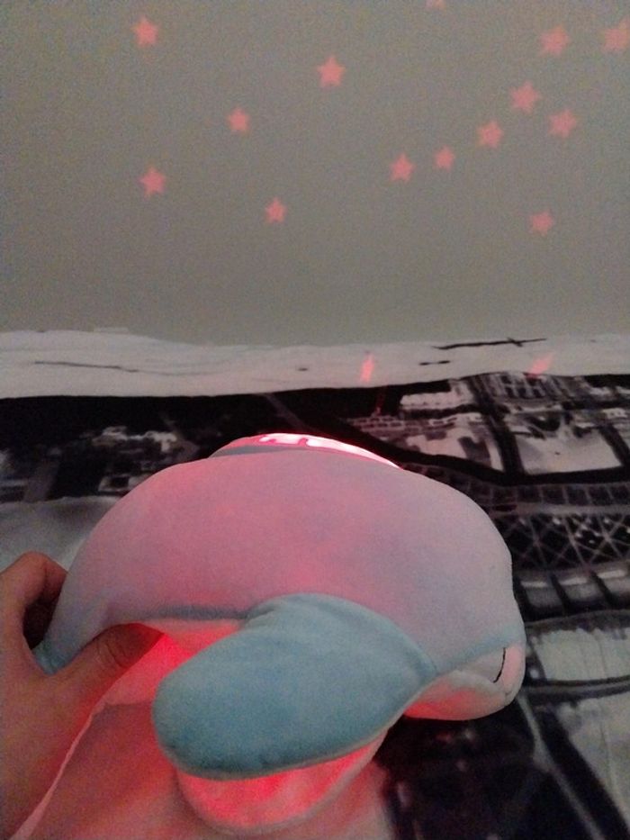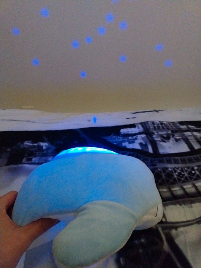 Veilleuse baleine bleu Projette des étoiles et lune au plafond Marche avec 3 piles (non fournis) 4 couleurs : rouge, bleu, vert, jaune Changement automatique Voir photo couleur : numéro 6 à 9 Voir photo projection sur le mur : numéro 10 à 13 #veilleusebebe
