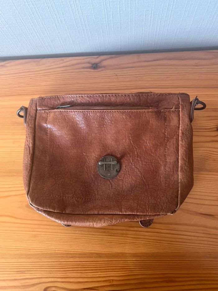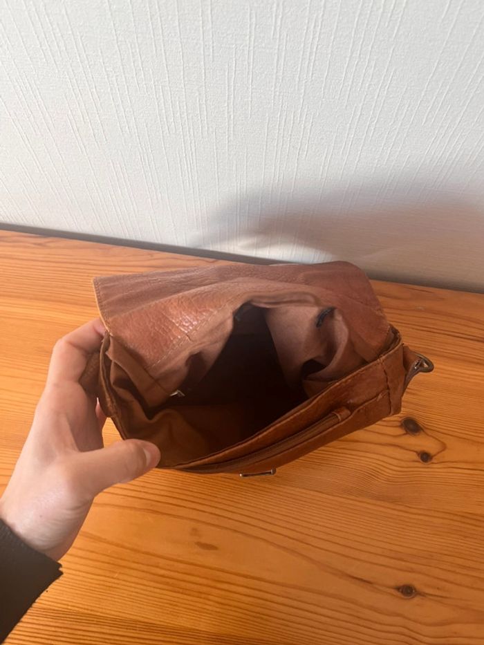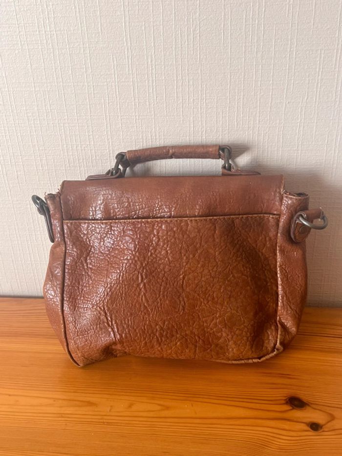 Petit sac à main marron style cartable. En cuir ? Bon état général. La sangle est cassé