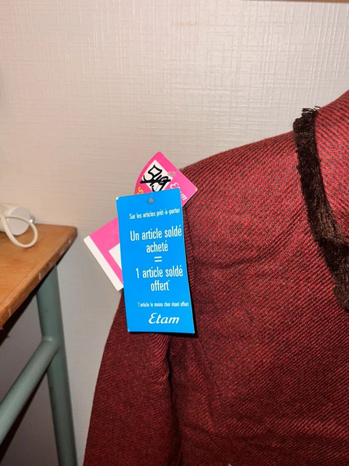 Ancienne veste de collection avec étiquette en FRANCS marque etam . Rouge avec frange Vintage Année 90