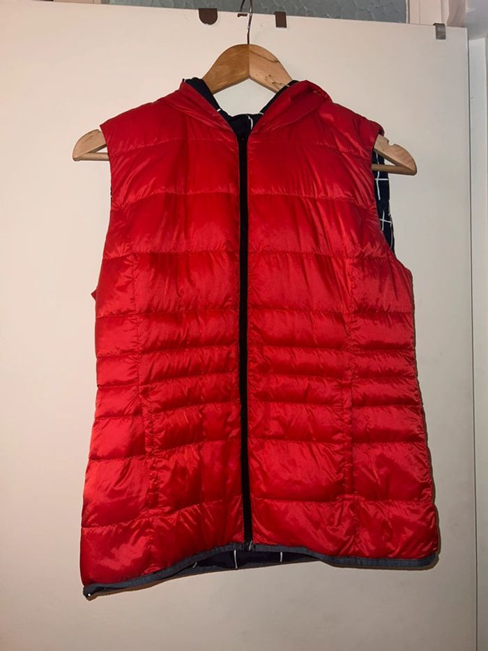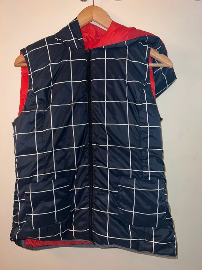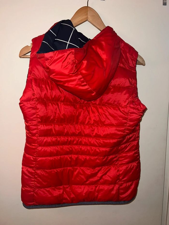 Doudoune sans manche plume réversible rouge et bleu à carreaux. Taille S Très bon état voir photos
