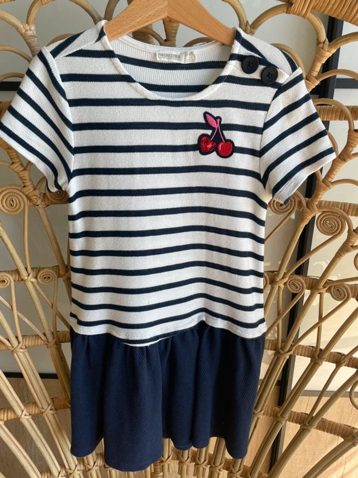 Robe Orchestra ni-matière 8 ans. Marine et marinière motif cerise - photo numéro 1