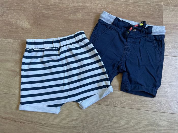 Lot 2 shorts garçon 18 mois. Kiabi et Gemo. Bleu marine et rayé marine