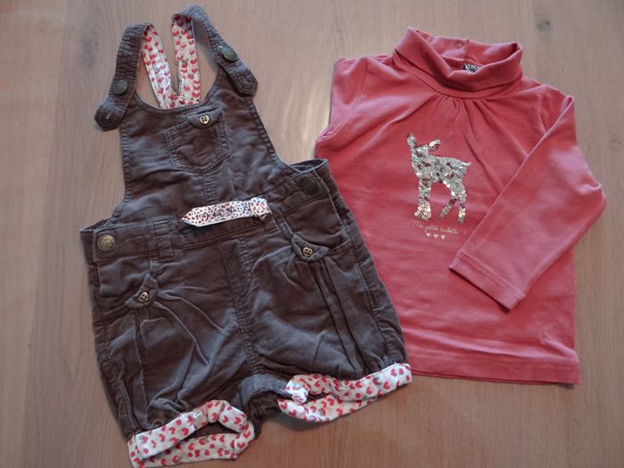 Salopette courte en velours et son tee-shirt col roulé montant marque Tape à l'Œil. Taille 9 mois.