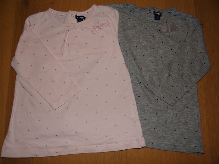 Lot 2 tee-shirts manches longues, bébé fille, 18 mois. Kiabi. Rose et gris - photo numéro 1