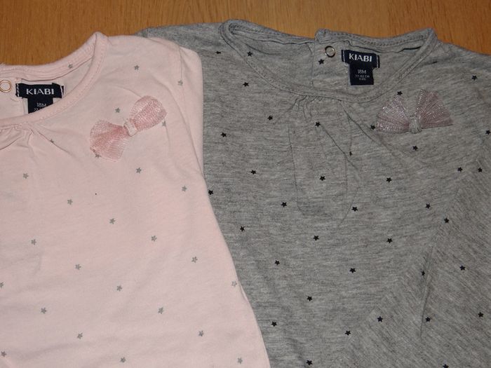Lot 2 tee-shirts manches longues, bébé fille, 18 mois. Kiabi. Rose et gris - photo numéro 2