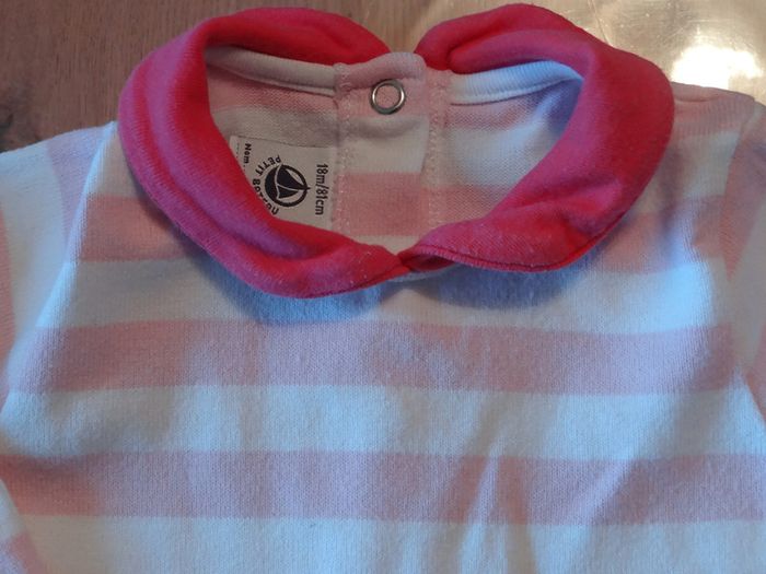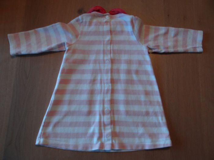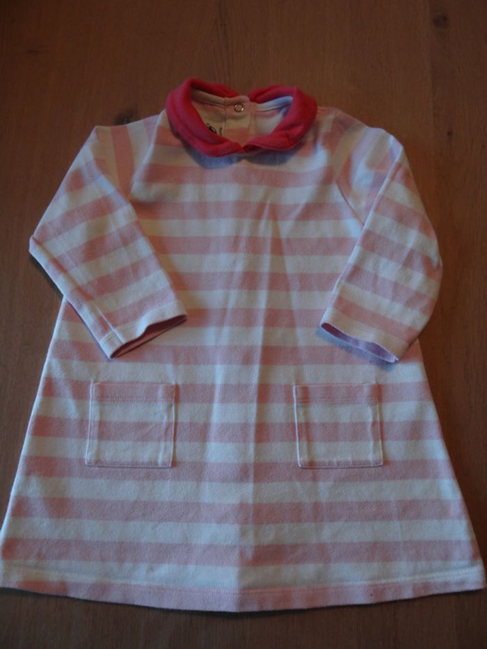 Robe bébé fille Petit Bateau, 18 mois. Rayée rose et blanche, col claudine.