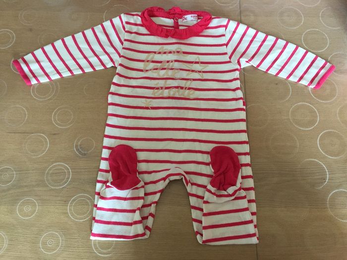 Pyjama 1 pièce, DPAM. 12 mois. Bébé fille. Rayures