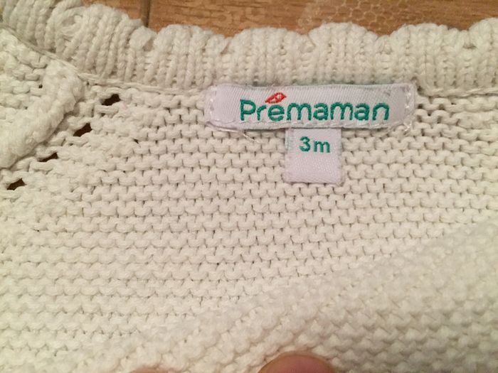 Gilet bébé fille, effet cache Coeur. 3 mois. Marque Prémaman.