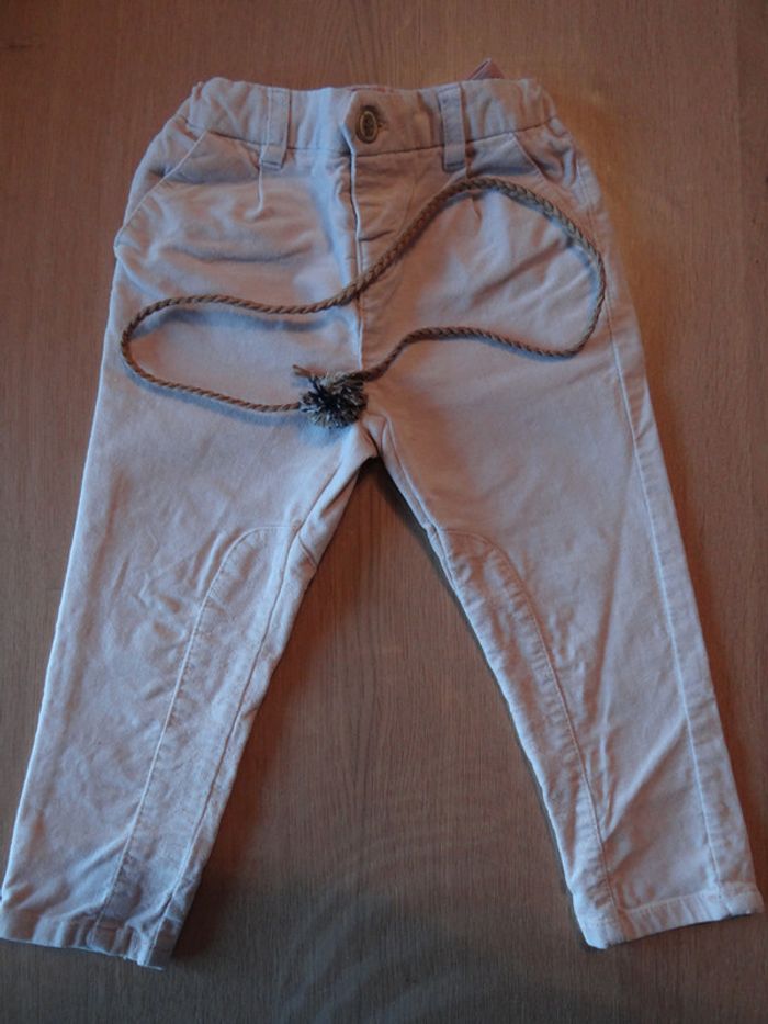 Pantalon slim effet peau de pêche rose pâle, taille 12/18 mois. Zara.