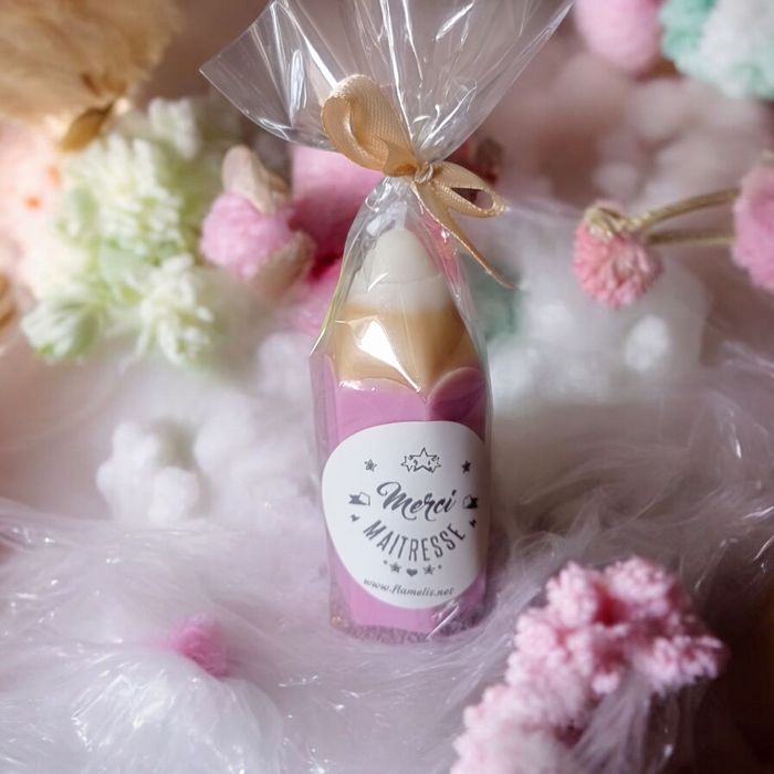 Bougie crayon violet (rose lavande) maîtresse, nounou, tatie - photo numéro 2