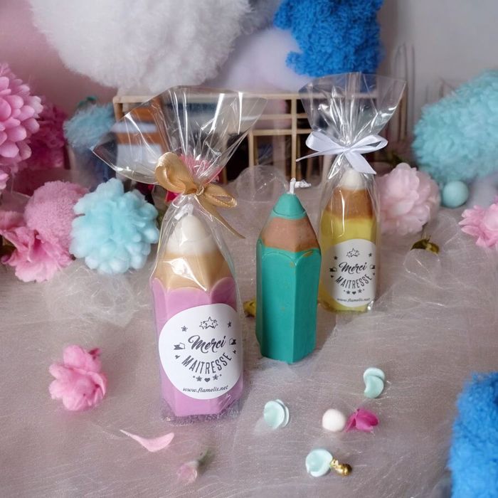 Bougie crayon violet (rose lavande) maîtresse, nounou, tatie