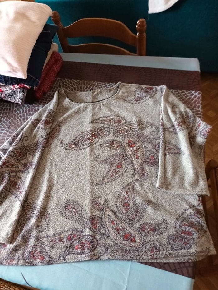 Haut Femme Taille 6 Couleur gris Motifs Marque plus Bon etat car bouloche