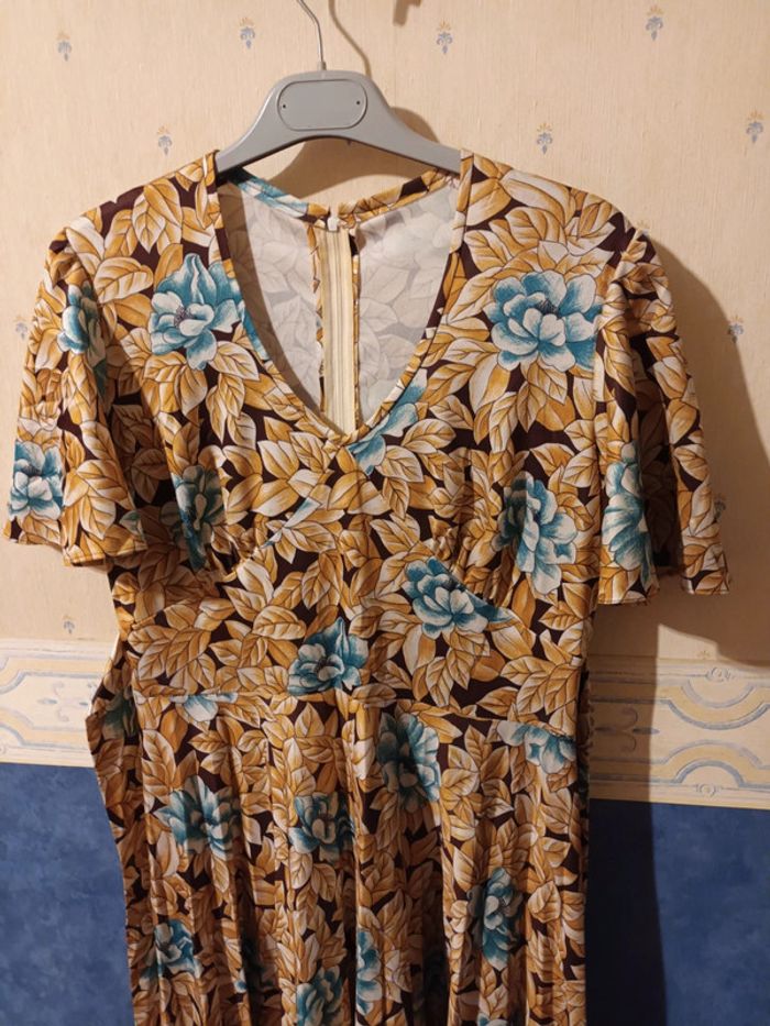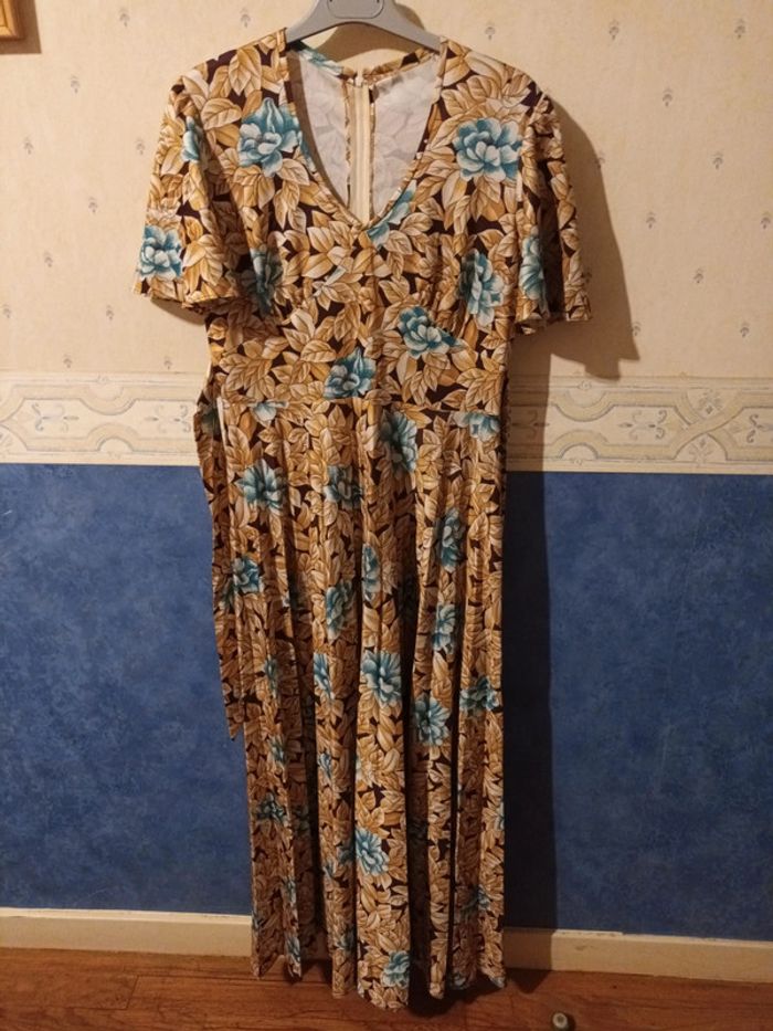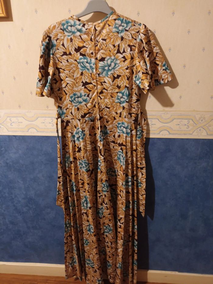 Robe longue Femme Taille 40 (plus d etiquette) Plissée en bas Ceinture à la taille Couleur marron Motif fleurs Très bon etat