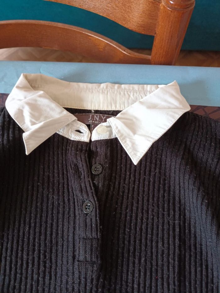 Pull léger Col et manches façon chemisier dessous Couleur noir Taille 40 Marque jennyfer Bon etat car tissus bouloche légèrement et col un peu jauni à l intérieur