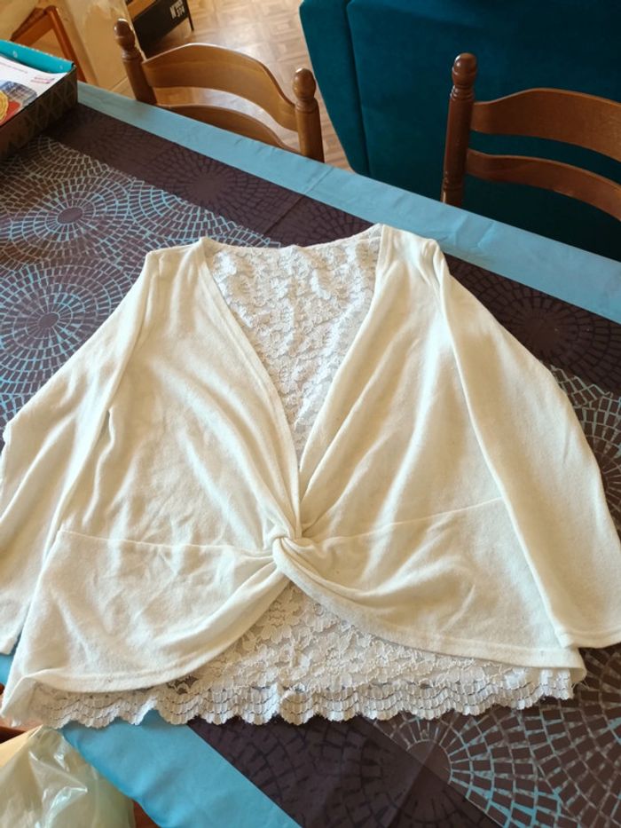 Pull léger Dentelle et nœud derrière Femme Couleur blanc Taille 5 Bon etat