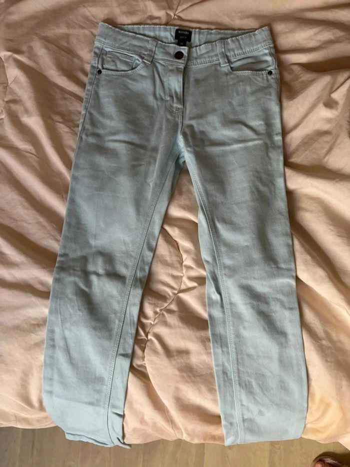 pantalon taille slim fit fille 9 ans marque kiabi couleur turquoise reglable a la taille tres bon etat