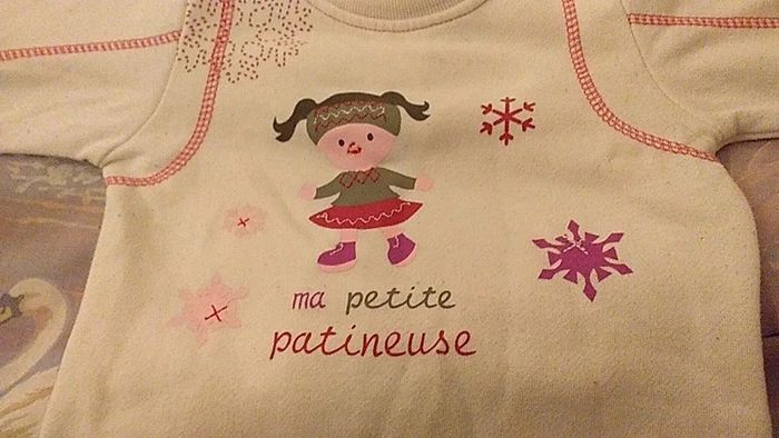 Pull sweat Fille 18 mois Couleur blanc Motif patineuse Sans marque Tres bon etat