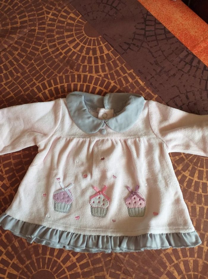 pull fille 1 mois couleur rose et gris motifs gateaux marque plus tres bon etat