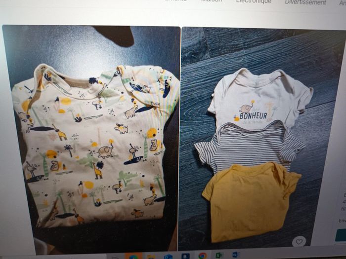 Lot de 4 body Mixte 3 mois (marque 6 mois mais taille petit) Couleur blanc et jaune Marque tape à l oeil Très bon etat