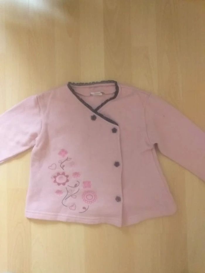 gilet ou pull fille 24 mois couleur rose motif fleurs sans marque tres bon etat