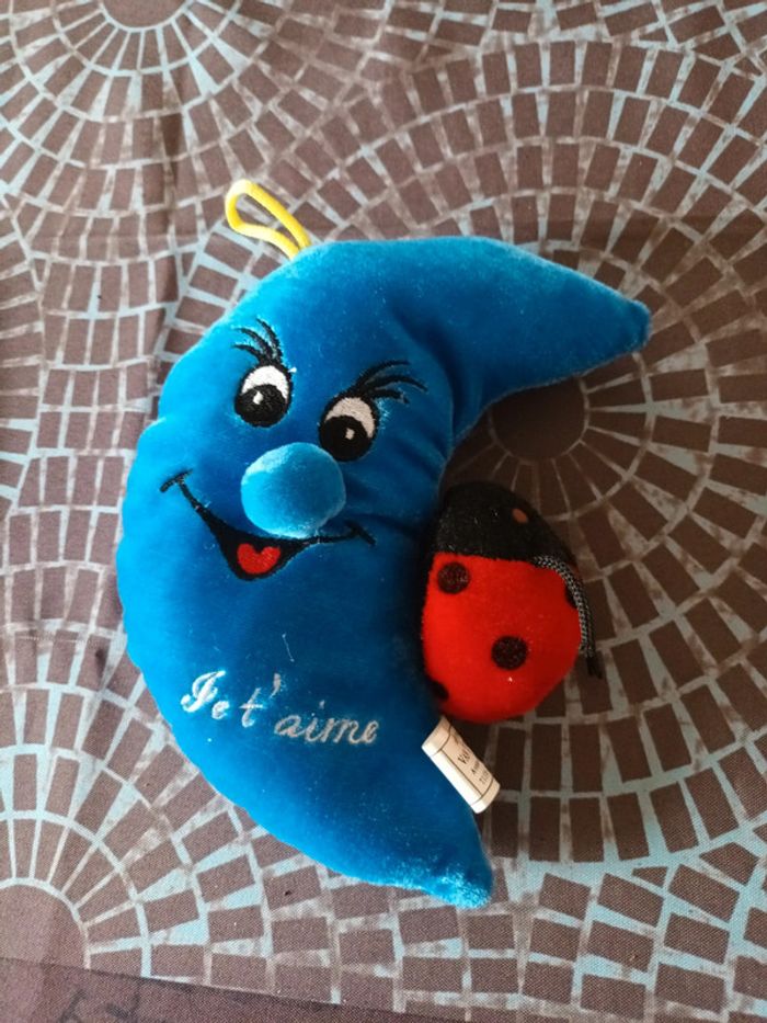 Peluche Lune avec coccinelle Inscription je t aime Très bon etat