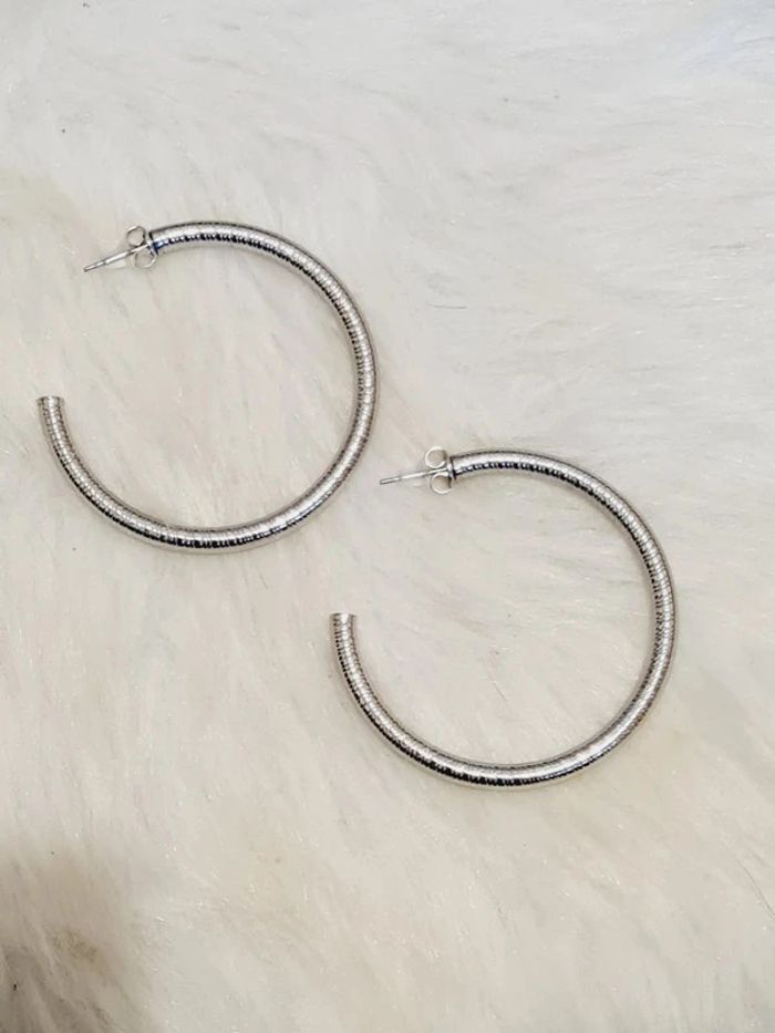 Créoles argentées 5 cm acier inoxydable - photo numéro 1