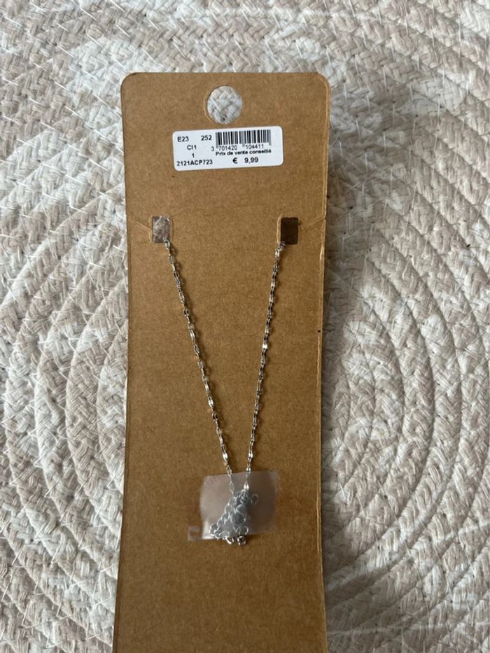 Je vends ce collier de la marque Adopt . C’est de l’acier inoxydable, il résiste à l’eau de mer, la piscine et la douche sans soucie . Tout neuf , jamais porter. Vendu 9,99€ je le cède à 5€ Si vous avez des questions n’hésitez pas