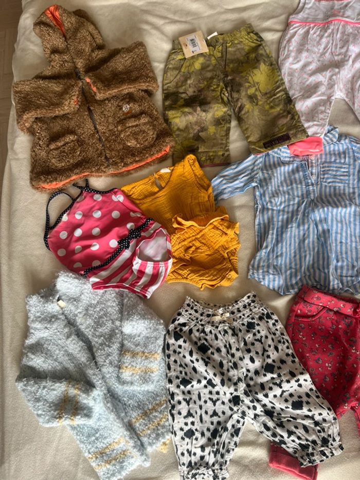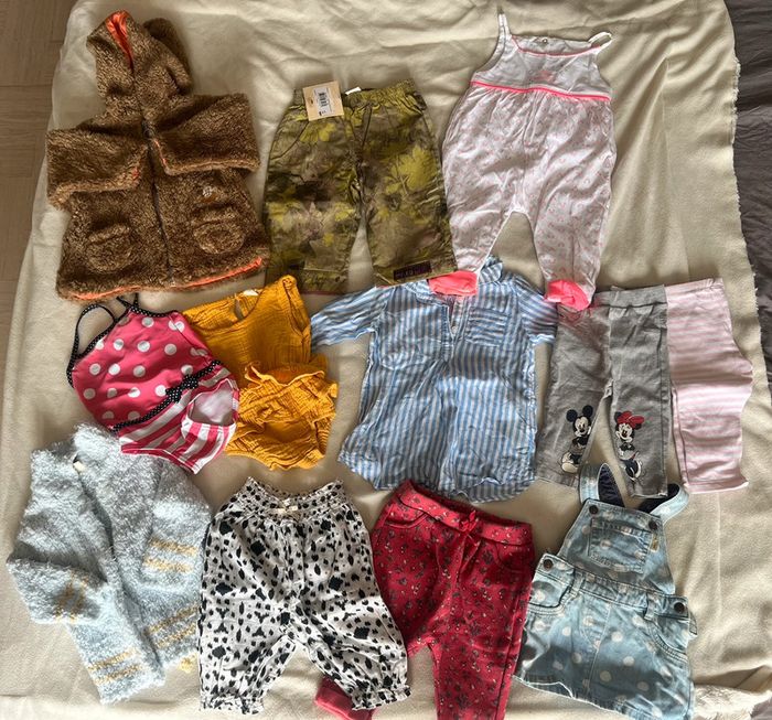 Je vends ce lot de vêtement fille Taille 6 mois Il y a 12 articles à 24€ ça vous fais 2€ pièces. Je peux vendre au détails ça me dérange pas même si j’aimerai liquider en une fois le lot 😅 Niveau marque on as tape à l’œil , 3pommes, H&M , Kiabi , primark , disney Il y a un vêtement avec son étiquette tout neuf , d’autres très peu porter voir jamais même. Tout est en très bon état , j’ai tout trier . Il y a juste le maillot qui a un défaut ( photo à l’appuie ) mais je m’en suis rendu compte lors de la photo. J’ai aussi un lot à vendre mais uniquement de vêtements tachés , je ne veux pas jeter du coup je fais un lot à prix cassés si il y a des intéressés 😉