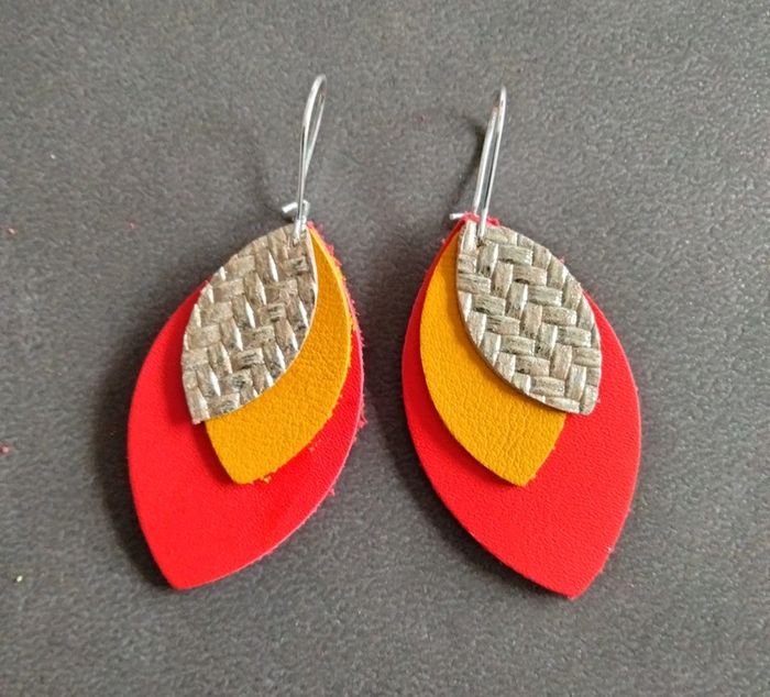 Cuirs orange, jaune et doré Montage avec attaches en acier inoxydable Neuves, fait main Marque "La Marinière Créative"